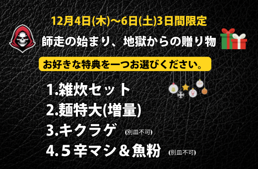 12月最初の3日間だけ“選べる特典”をご用意しました。